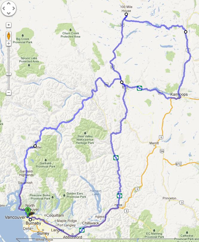 We spent the first week at Scott and Sven's apartment looking after the cat while Scott and Sven set off for a well earned holiday on Vancouver Island. We spent most of this time visiting the tourist areas around Vancouver and winding down the jet lag from our trip over. However, the next week we hired an Avis car and set out on an adventure visiting sites along the old 'Gold Trail'. I have to say that at £176.00 for the week, the car was a peach and we had a great trip out and saw some awesome and interesting sites. Here is an overview of the route we took over the course of our week away.