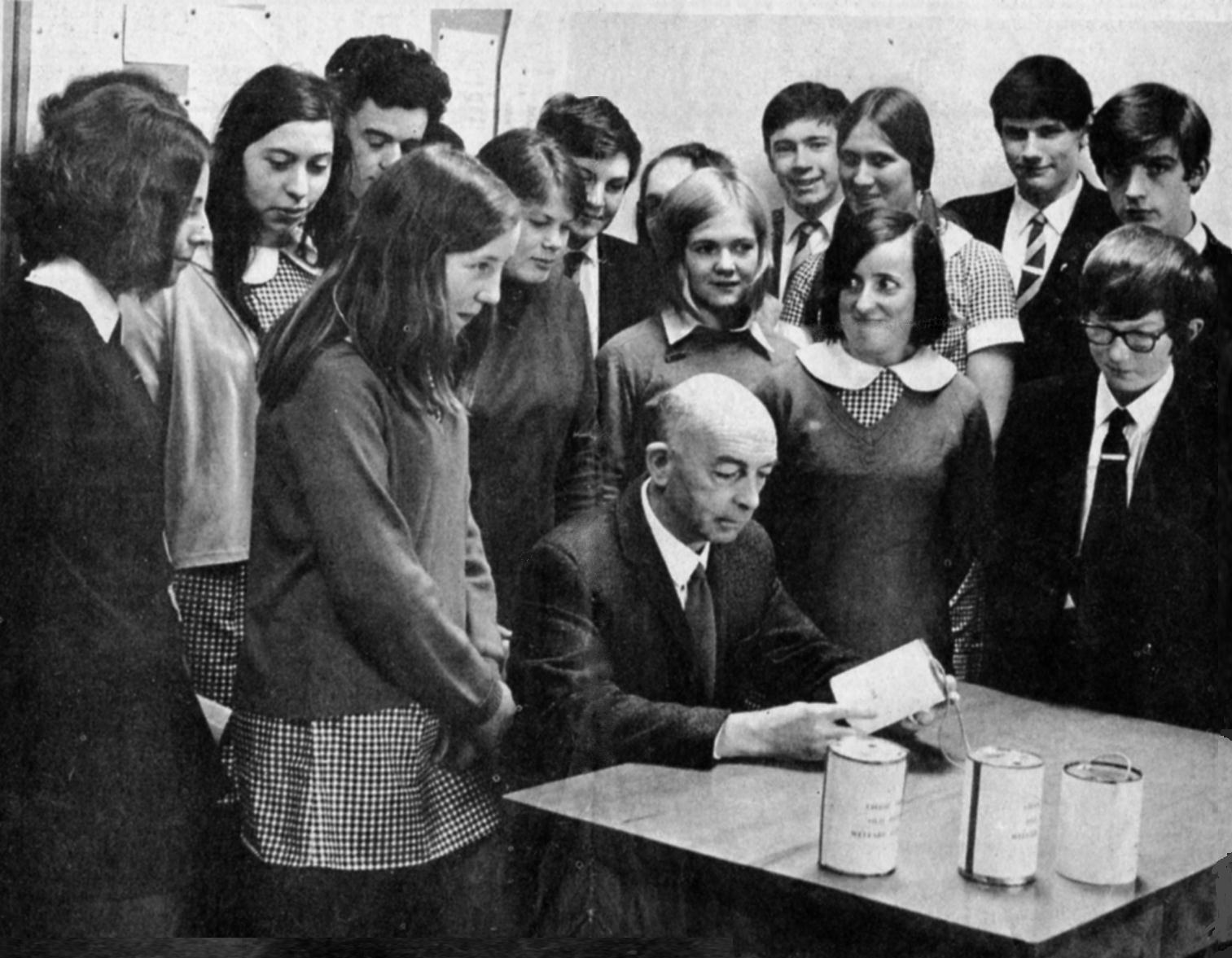 at the centre (left) of the group, Mr Pinnell.