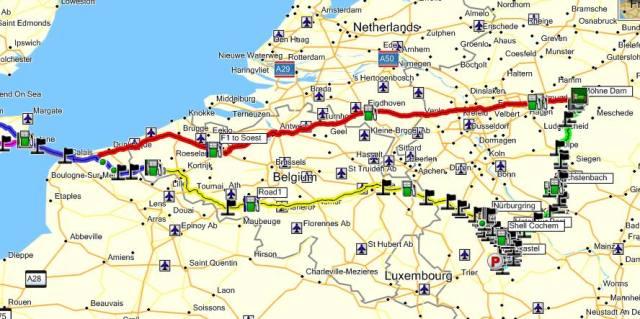 This is the route we took starting from Dover and a ferry trip to Calais.