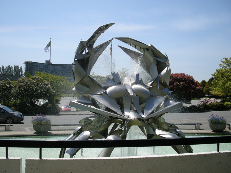 After visiting Granville Island, we walked west along the harbour wall to reach the Vancouver Space Centre. As we entered the Visitor Centre, we were impressed by a fantastic Crab Sculpture, wrought from Stainless Steel and acting as a gate guardian.