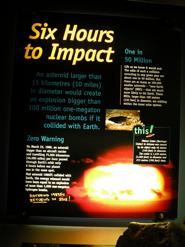 In addition to the displays and interactive experiments, we attended a 30 minute lecture by a very pleasant presenter, who explained about the dangers of outer space. In this she utilised a number of clever demonstrations involving lots of bangs, flashes and audience participation. It was all very well done and worth the visit.