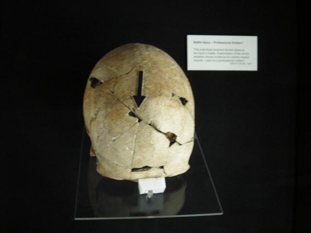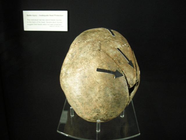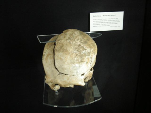 skulls showing clear signs of injury from swords and other